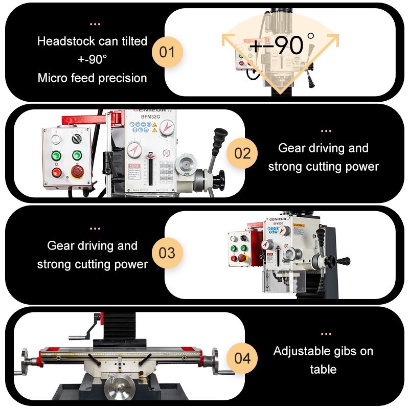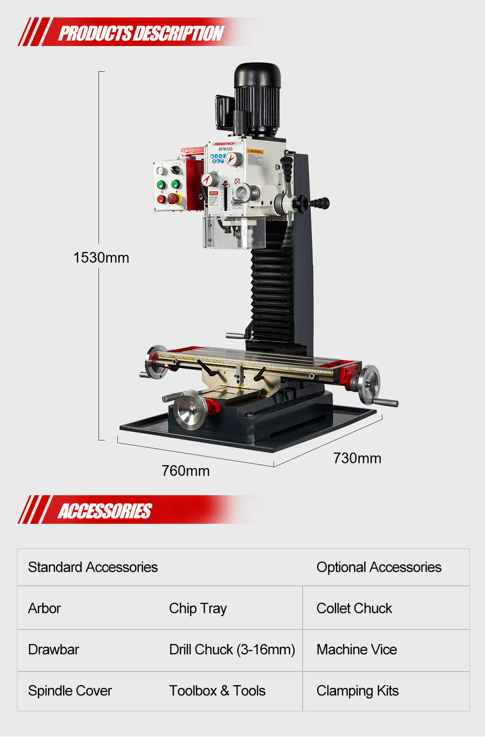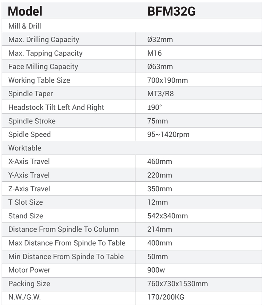 BFM32G China High Quality Universal Industrial Bench Type Small Milling and Drilling MachineMax. Drilling Capacity:Ø32mmMax. Tapping Capacity:M16Face Milling Capacity:Ø63mmWorking Table Size:700x190mmBrushless Motor Milling And Drilling Machine , Drilling And Milling With Low Price , milling and drilling machine Inquiry Send Email