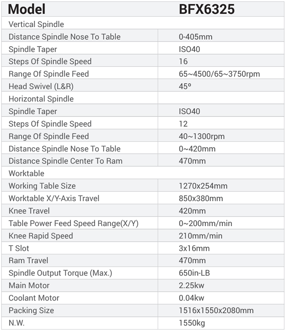 High Quality BFX6325 Universal Milling Machine High Precision Milling MachineDistance Spindle Nose To Table:0-405mmSpindle Taper:ISO40Steps Of Spindle Speed:16Range Of Spindle Feed:65~4500/65~3750rpm225KW Universal Milling Machine , Multifunctional Milling Machine , Industrial-grade milling machine Inquiry Send Email